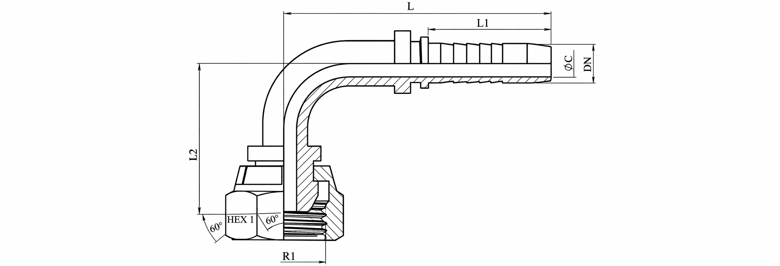 HÜDRAULILINE LIITMIK BSP SISEREKEEGA 90° PÕLV DN25-1