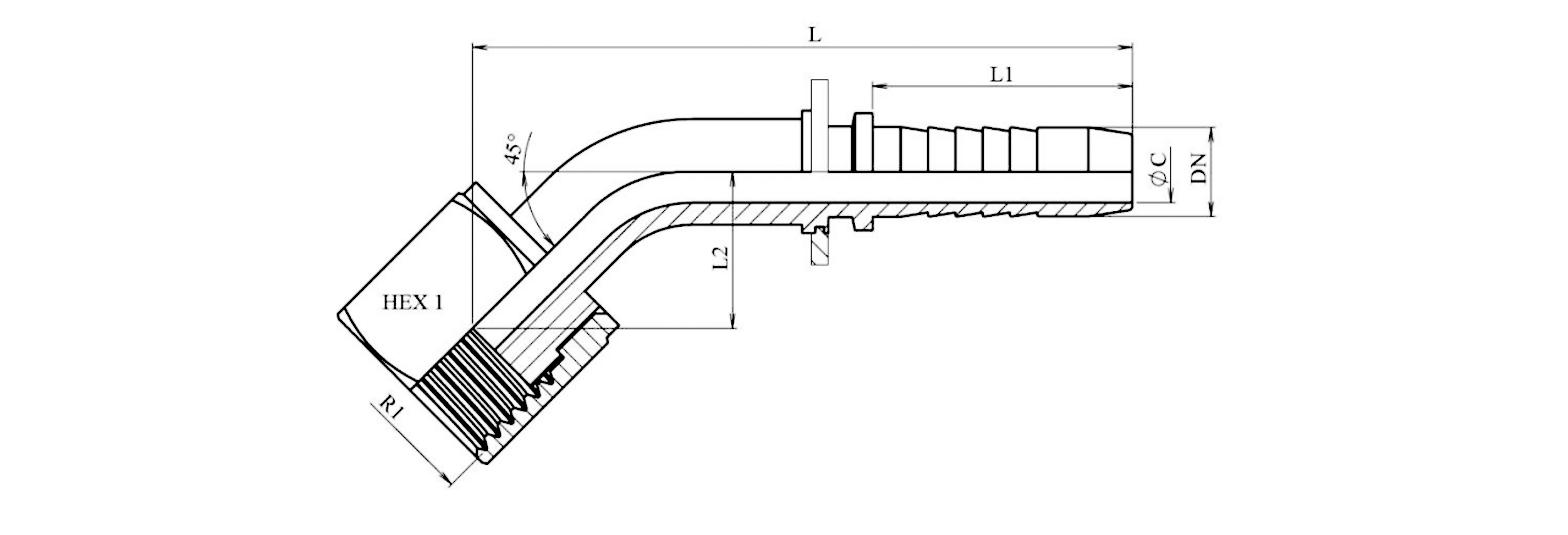 HÜDRAULILINE ÜHENDUS DKORFS NAINE KÜLV 45° DN16-1 -14