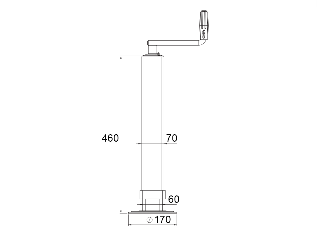 A menetes támasztóláb stabil és biztos alátámasztást nyújt a pótkocsik számára. Lehetővé teszi a magasság kézi, könnyű állítását a menetes mechanizmus elfordításával, így precízen alkalmazkodik a talajfelszínhez és a működési követelményekhez.