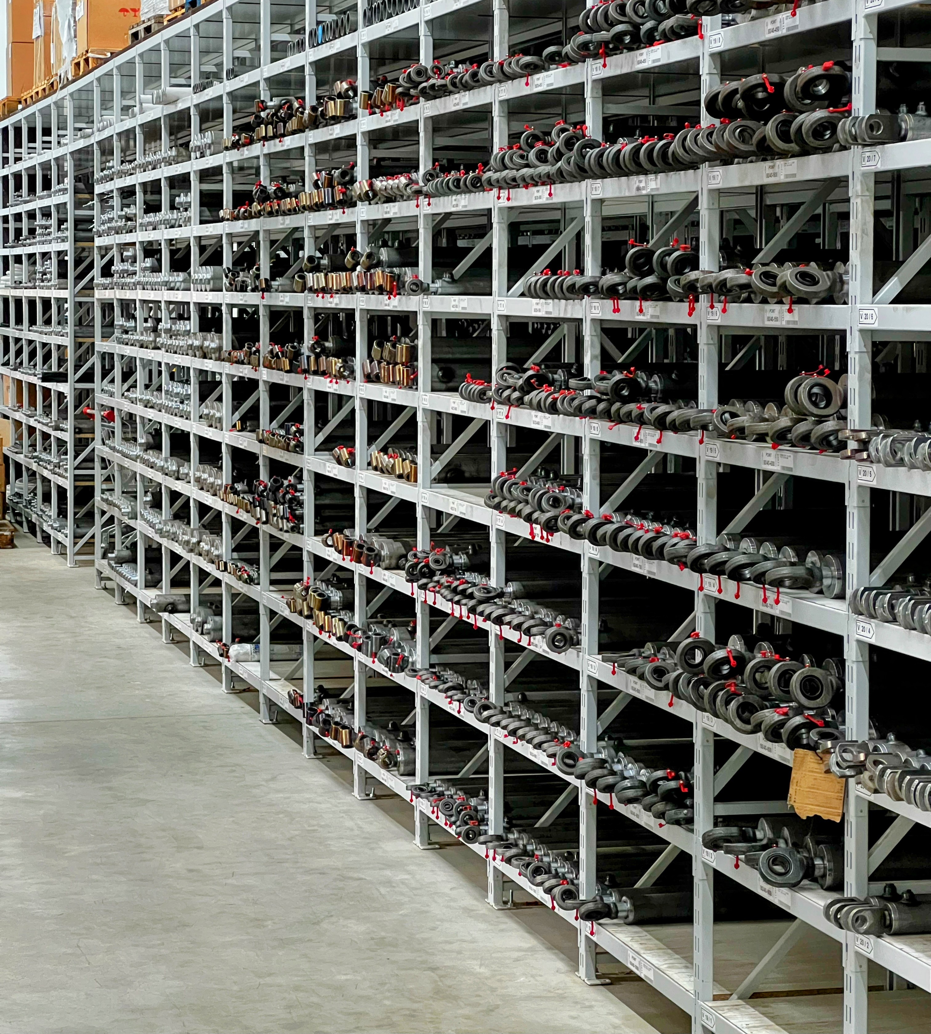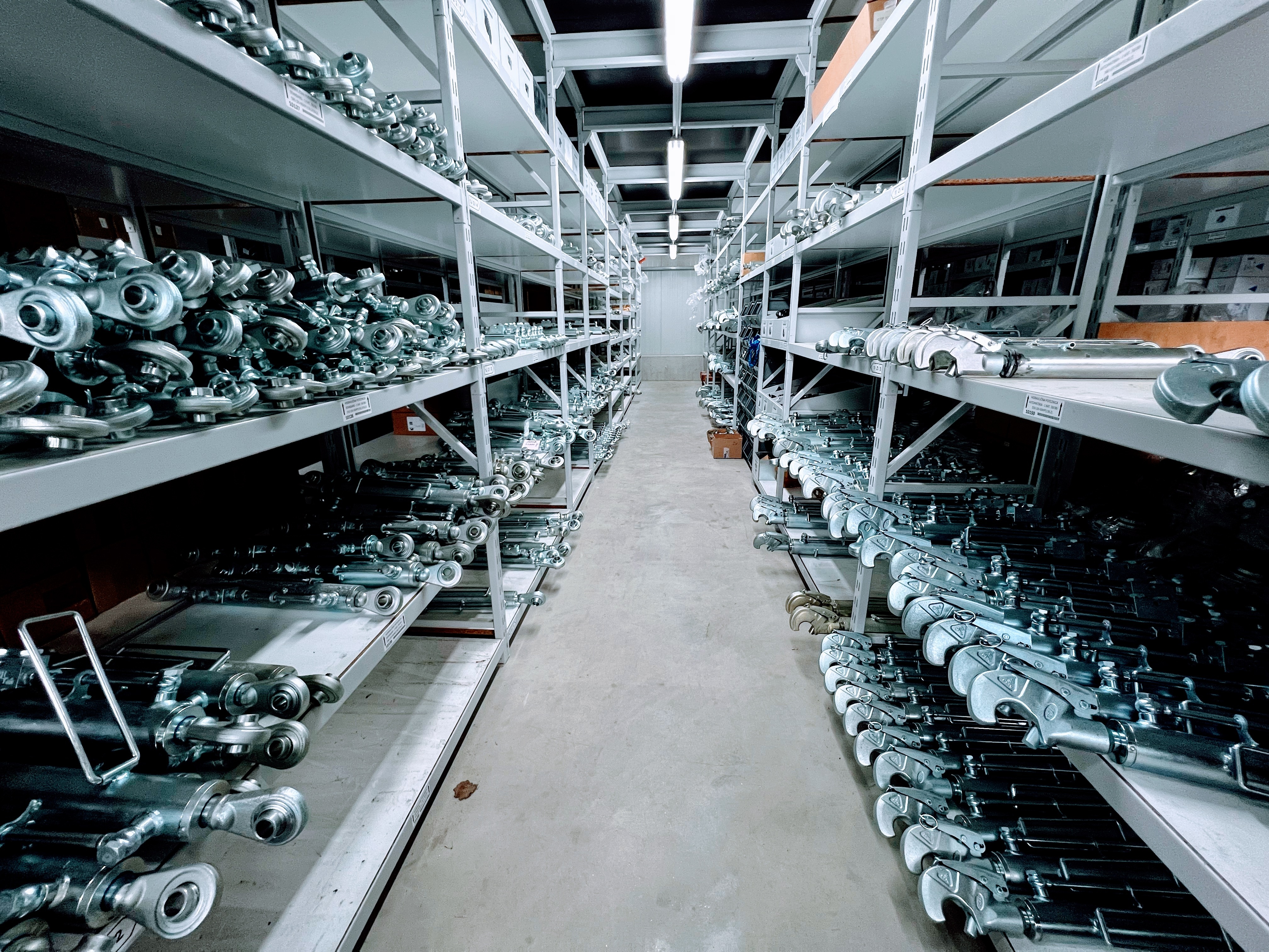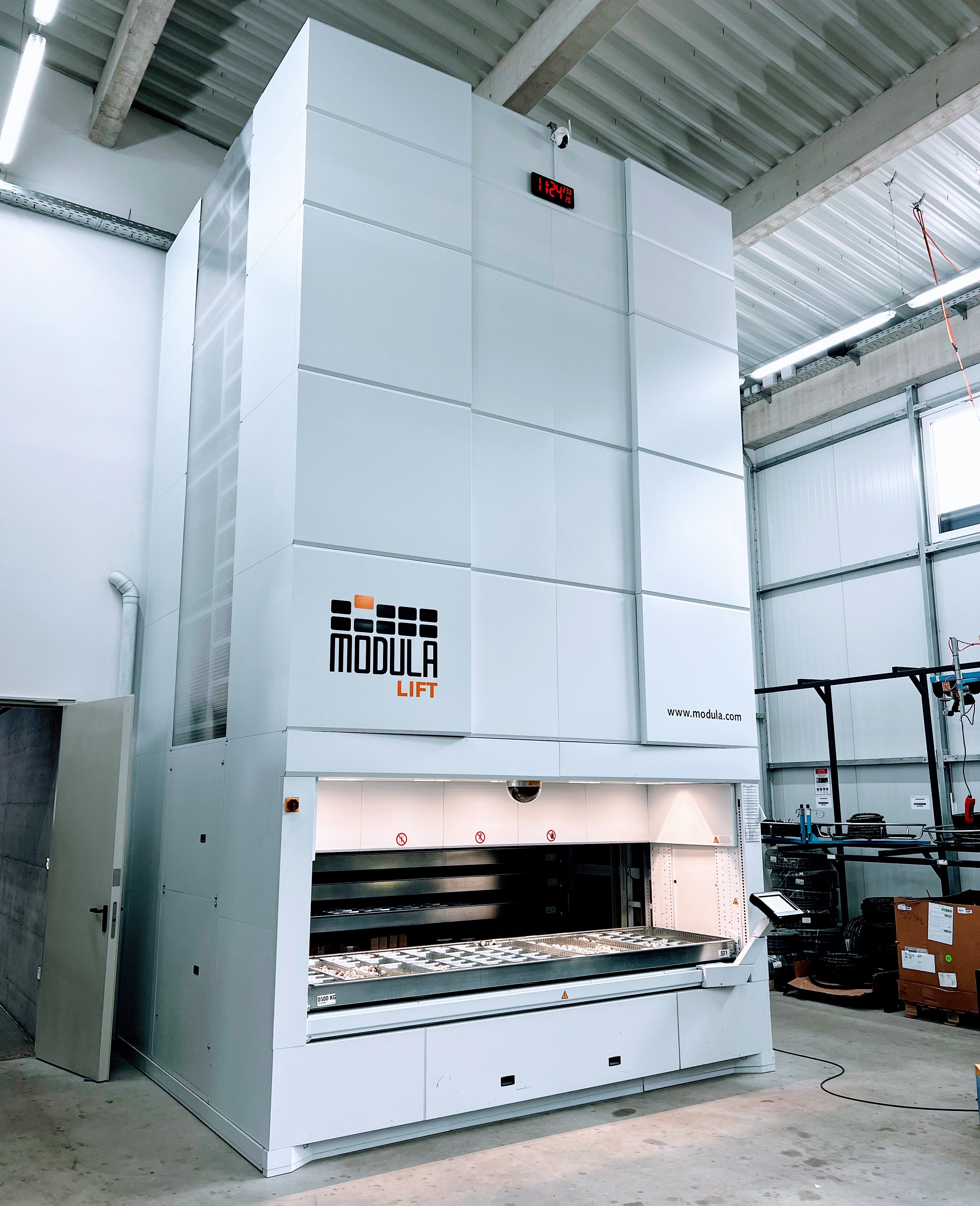 Smulkioms detalėms naudojame „išmanųjį sandėlį“ (Modula). Prekės pagal kodus sudėtos į stalčius su daug skyrių. Įvedus kodą ekrane, sistema per kelias sekundes atneša reikiamą stalčių ir pažymi skyrių lazeriu. Sistema integruota su atsargų apskaita, todėl likučiai visada tikslūs. Tai ypač svarbu jungtims, nes kiekvieną dieną montuojame daugybę individualiai užsakytų hidraulinių žarnų su skirtingais antgaliais.