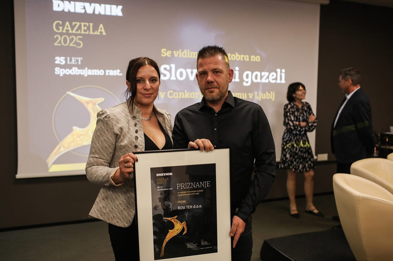 2025 m. buvome pagerbti kaip sparčiausiai auganti įmonė Podravje–Pomurje regione. Šis apdovanojimas atspindi strateginę lyderystę, atsidavusią komandą ir mūsų partnerių, tiekėjų bei klientų pasitikėjimą. Į Gazela apdovanojimą negalima pretenduoti – laimėtojus renka ekspertų komisija, vertindama daugelį įmonės aspektų. Pasak metodikos komisijos, mūsų konkurencinis pranašumas slypi aiškiame dėmesyje tiksliniams klientams, kurių poreikius suprantame ir patenkiname geriau nei konkurentai.