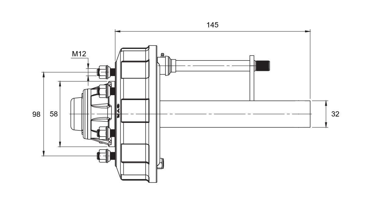Stubass ir paredzēts izmantošanai dažādu veidu piekabēs ar bremžu sistēmu. Stuba garums ir 145 mm, ar slodzes kapacitāti līdz 450 kg.